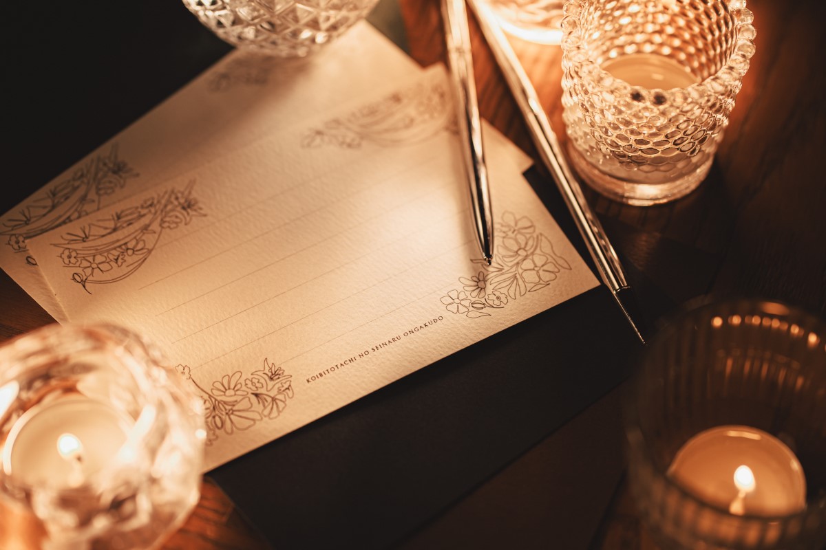 チャペルでのコンサート後にノバレーゼオリジナルのレターセットを配りました。スマートフォンで手軽にメッセージを送れる時代だからこそ、相手への想いを一つひとつ丁寧に言葉に綴って、その温もりと尊さを感じていただきたいと思ったんです。大好きな人からもらう言葉って、特別ですよね。実際に、書いた手紙をお互いに読み合うカップルもいて、その様子がとても印象的でした。