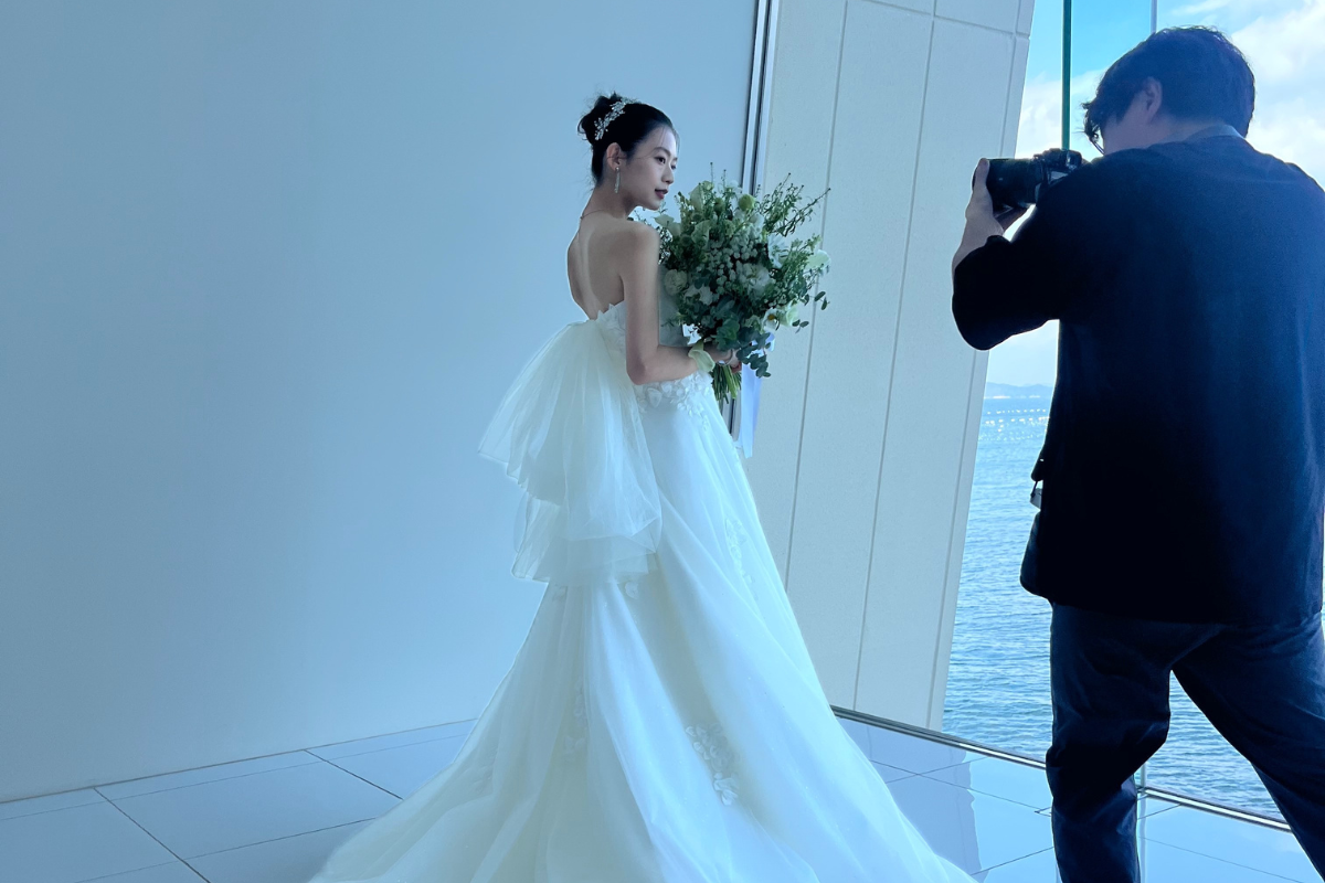 お客様がご自身の結婚式を思い描きやすいよう、ノバレーゼが運営する婚礼施設で撮影を行いました。ドラマチックな階段がある会場や、海を望む会場など、多彩なカットを収めています。当日の雰囲気をよりリアルに感じられるビジュアルに仕上がっています。